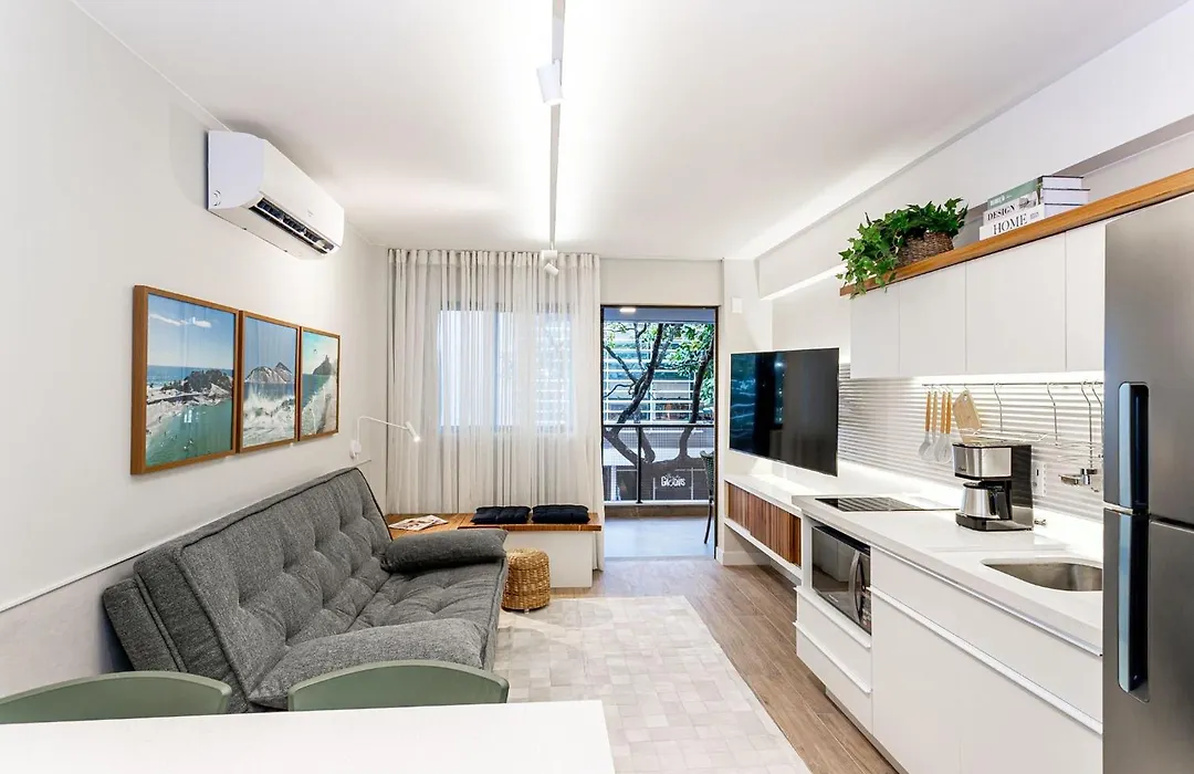 Quarto&Sala A 170M Da Praia De Ipanema | Fa 49/302 apartment comprises a balcony and offers comforts like air conditioner, along with a TV. The accommodation is also furnished with a sofa. This property counts 0 bedrooms. For added convenience, a shower is available at the apartment. Additionally, you'll find a hairdryer and bath sheets.